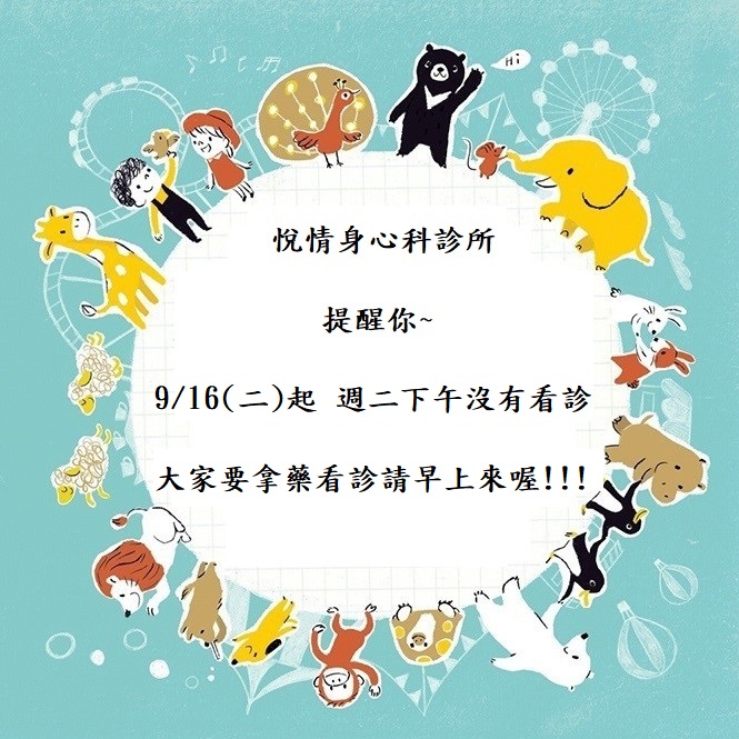 9/16(二)下午沒有看診囉!